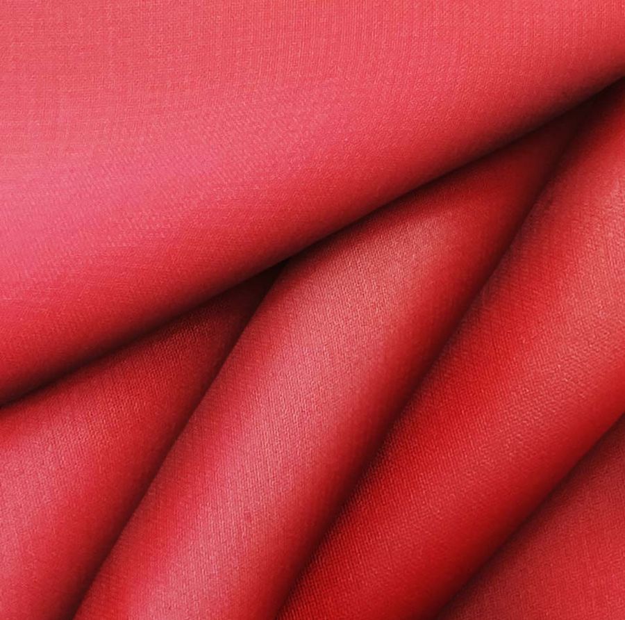 La tela base de este producto es la Gasa Transparente - Salamanca, compuesta por 100% poliéster y con un gramaje de 28 gr/m2. El color liso impreso es Rojo Pigmento, con una composición CMYK de 0 95 85 0. Este llamativo tono rojo es intenso y vibrante, con un matiz de magenta intenso y una ligera presencia de amarillo. Este color combina muy bien con tonos complementarios más suaves, como tonos verdes o azules cielo, o colores análogos como el naranja o el rosa.