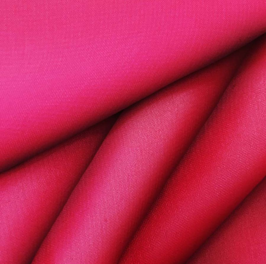 La tela base es Gasa Transparente - Salamanca y su color liso impreso tiene los siguientes atributos: Rojo, munsell, con tinta magenta alta (97) y tinta yellow media (66). Este color es intensamente vibrante y cálido, lo que lo hace ideal para diseños de ropa de verano, alta moda y lencería de novias. Combina bien con otros tonos cálidos y neutros, como amarillos, naranjas, rosas, terracotas y dorados.