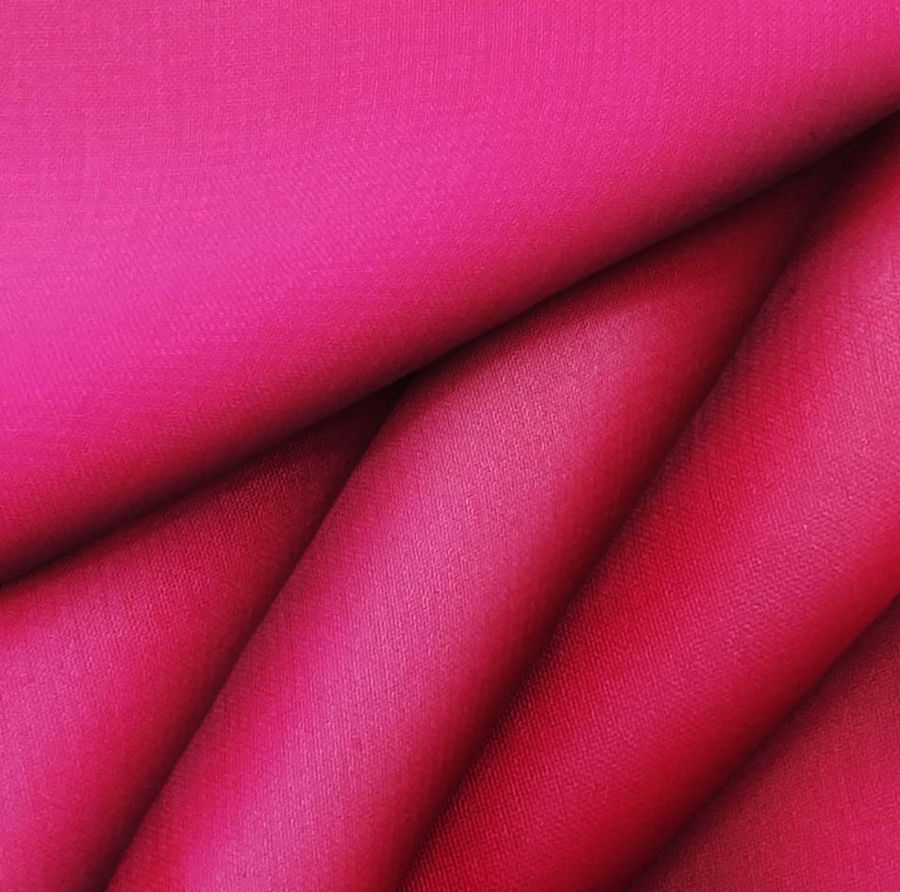 La tela base de este tejido es una Gasa Transparente - Salamanca, fabricada en 100% poliéster con un gramaje de 28 gr/m2 y un ancho de 150 cm. El color liso impreso es rojo purpúreo, que se crea con una combinación de tintas cian (1), magenta (100), amarillo (57) y negro (0) en un proceso de impresión por sublimación. Esta combinación de colores muestra un rojo oscuro y rico con tonos púrpuras. El color secundario rojo purpúreo es un color elegante y sofisticado que combina bien con otros colores oscuros como azul marino y verde oscuro.
