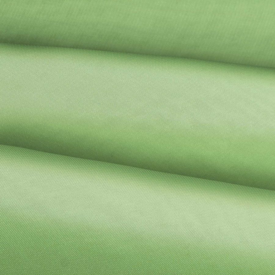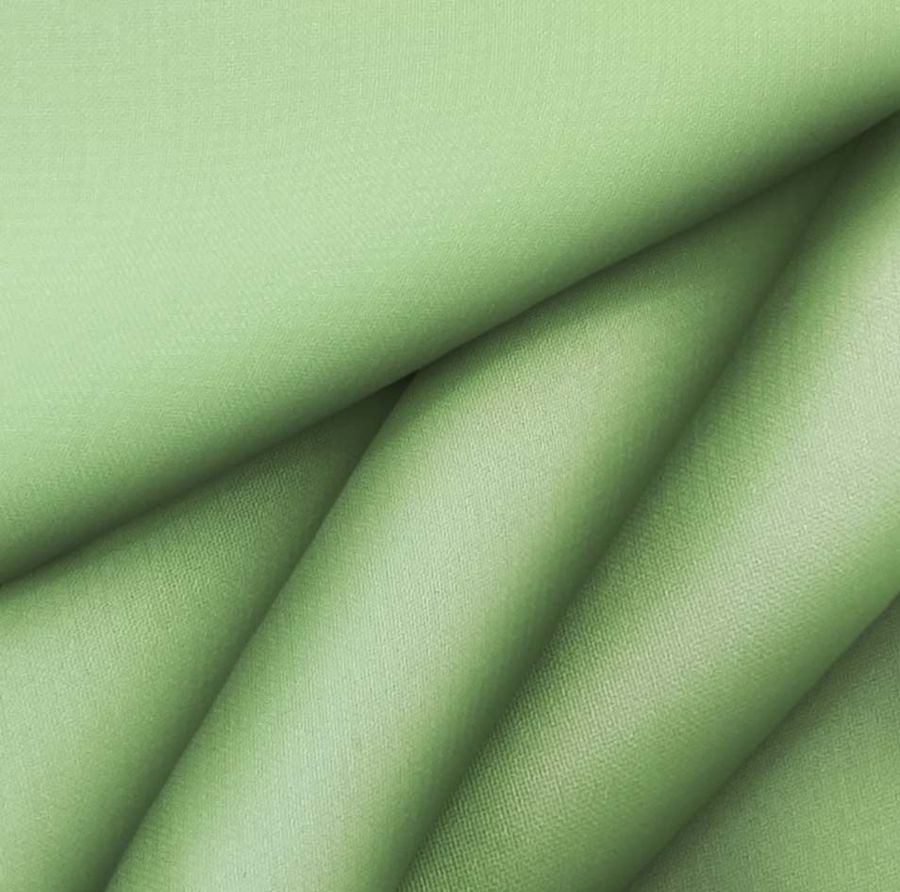 La tela base es la Gasa Transparente - Salamanca, de composición 100% poliéster y gramaje de 28 gr/m2. Su ancho es de 150 cm y pertenece a la temporada de verano. El color liso impreso tiene tonalidades de verde pistacho con un contenido de tinta cyan del 50% y tinta yellow del 68%, sin presencia de tinta magenta ni black en el CMYK. El color es simbólico de la naturaleza y la frescura.