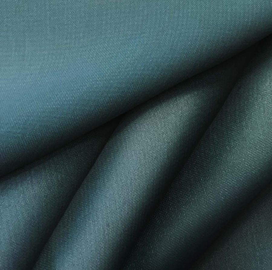 La tela base, Gasa Transparente - Salamanca, de composición 100% poliéster, presenta un gramaje de 28 gr/m2 y un ancho de 150 cm. El color liso impreso en la tela, un tono verde-azulado (verde azuloso), se obtiene mediante la combinación de las tintas cian 84, magenta 54, amarillo 55 y negro 59, que forman el CMYK 84 54 55 59. Este color secundario proporciona una sensación de frescura y relax, evocando la naturaleza y la tranquilidad. Combina perfectamente con tonos neutros como el blanco, el beige o el gris.