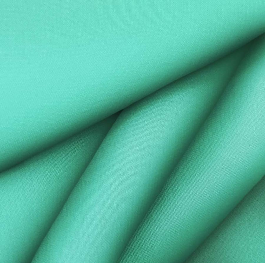 La tela base, Gasa Transparente - Salamanca, de composición 100% poliéster, tiene un gramaje de 28 gr/m2 y un ancho de 150 cm. El color liso impreso se presenta en un verde eucalipto con un CMYK de 63 0 48 0. Este color primordialmente cian con un toque de amarillo, se asemeja al color de las hojas frescas de eucalipto. El verde eucalipto es un color vigente, que trasmite paz y armonía, está conectado con la sanación, la frescura y la vitalidad. Se combina perfectamente con tonos verdes más oscuros o claros, rosados, anaranjados y lilas suaves. Esta tela está impresa con este color liso a una sola cara por impresión digital textil, lo que permite obtener un acabado de alta calidad, con colores vibrantes y duraderos.