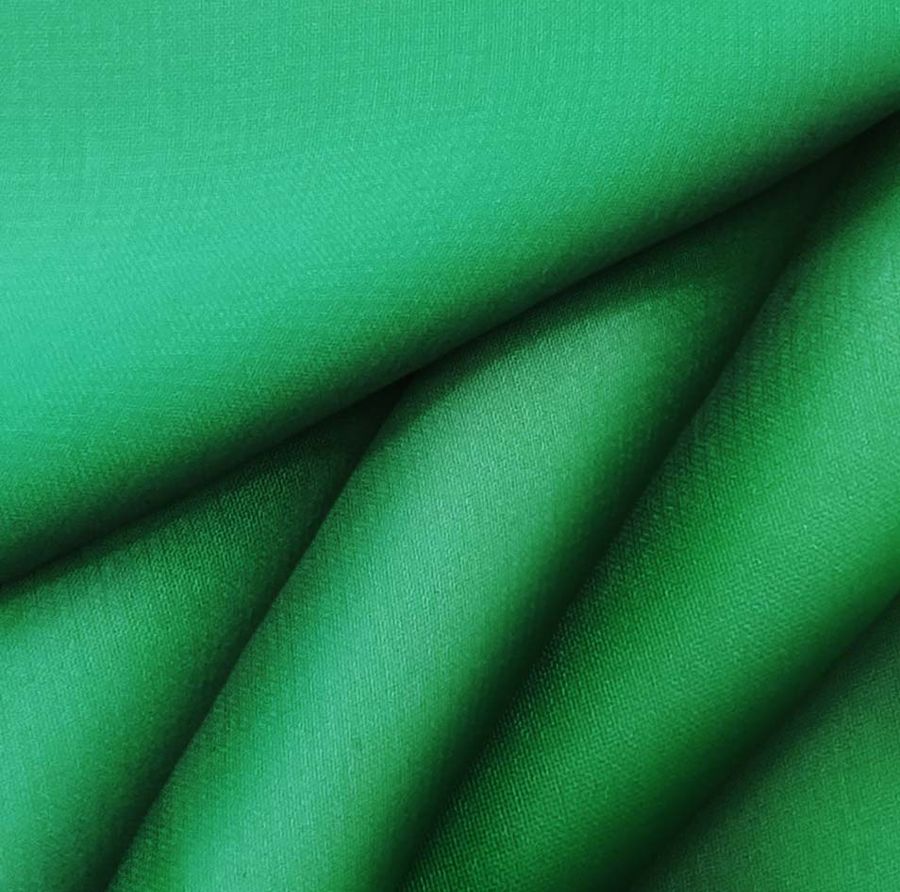 La tela base es Gasa Transparente - Salamanca, una gasa de poliéster con un gramaje de 28 gr/m2 y un ancho de 150 cm. El color liso impreso se refleja en el CMYK con valores de 85 19 94 5, un color verde hoja vibrante y fresco. Este tono de verde combina perfectamente con tonos naturales, marrones y beige, así como con tonos más cálidos como rojos y naranjas.