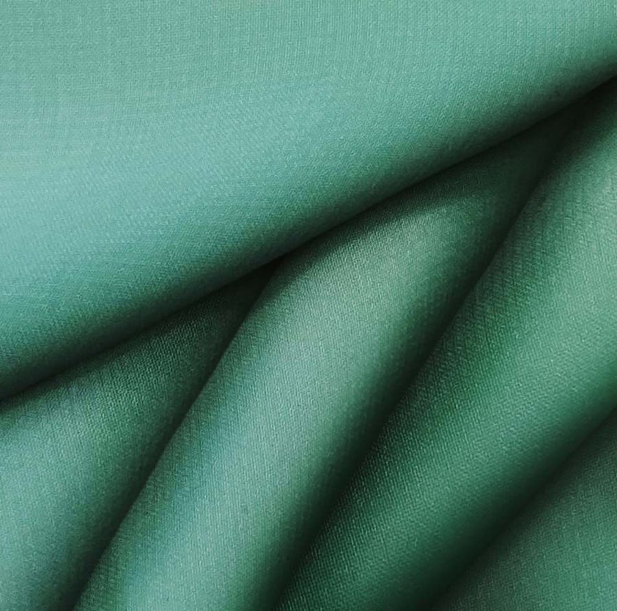 La tela base es la Gasa Transparente - Salamanca, de composición 100% poliéster y un gramaje de 28 gr/m2. Su ancho es de 150 cm y se recomienda no blanquearla, lavarla a una temperatura máxima de 30ºC, no secarla en secadora y plancharla a temperatura fría. Esta tela es perfecta para su uso en novias y vestidos, faldas, pareos, pañuelos y vestidos infantiles durante la temporada de verano. El color liso impreso es verde Hooker con un CMYK de 77 31 64 18, lo que significa que es un verde oscuro con un toque de amarillo. Este color combina muy bien con tonos neutros como el blanco, gris y negro, así como con otros verdes más claros y amarillos brillantes. El tejido está impreso con el color liso a una sola cara por impresión digital textil, lo que significa que solo está impreso en una cara del tejido. La Gasa Transparente - Salamanca es una tela suave y delicada, con una textura visual transparente y una textura táctil muy fina. Es ideal para prendas de ropa elegantes y refinadas. Como cuidados, se recomienda no blanquear, lavar a una temperatura máxima de 30 °C, no utilizar tricloroetileno en la limpieza en seco, no secar en secadora y planchar en frío. Por último, la tecnología de impresión utilizada para fabricar esta tela es la sublimación de poliéster, que permite obtener una impresión nítida y de alta calidad que resiste al paso del tiempo.