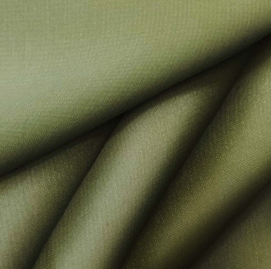 La tela base es Gasa Transparente - Salamanca, compuesta por 100% poliéster y con gramaje de 28 gr/m2. El color liso impreso es Verde Jungla, cuyo CMYK es 59 46 88 43. Este color se caracteriza por ser un verde profundo y oscuro, que crea un ambiente de naturaleza salvaje y exótica. Es un color secundario que se combina con tonos naturales como el beige, marrón y amarillo, así como con tonos más intensos como el rojo y el rosa.