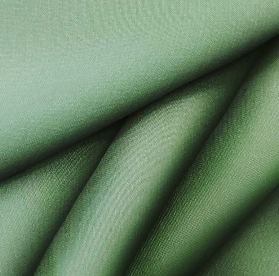 La tela base de la Gasa Transparente - Salamanca es 100% poliéster, una gasa de 28 gr/m2 y se presenta en un ancho de 150 cm. El color liso impreso en esta tela es Verde Marchito, con un CMYK de 65 31 72 14. Este color es un verde oscuro con matices marrones, lo que le da un aire de sobriedad y elegancia, y combina especialmente bien con tonos tierra, dorados, beige y mostaza.