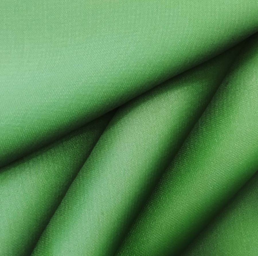 La tela base es la Gasa Transparente - Salamanca, de 100% poliéster y 28 gr/m2, con una anchura de 150 cm. Su color liso impreso es verde Mayo, con un CMYK de 74 21 92 5. Es un color que evoca a la naturaleza y transmite frescura. El verde Mayo es un tono fuerte que combina muy bien con los colores dorado y beige, así como con tonos azules y grises. Este tejido está impreso con el color liso a una sola cara por impresión digital textil, lo que le da un acabado uniforme y vívido.