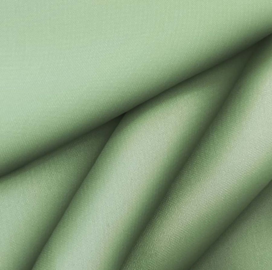 La tela base de este tejido es la Gasa Transparente - Salamanca, fabricada a partir de 100% poliéster con un gramaje de 28 gr/m2. La tela es una gasa suave y delicada, con un ancho de 150 cm y una transparencia visual que la hace perfecta para prendas ligeras y vaporosas. El color liso impreso en esta tela es un verde pálido, con un CMYK de 53 17 63 2, el cual aporta una sensación de calma y frescura. Este color secundario combina perfectamente con colores como el blanco, el beige y el rosa, lo que lo hace ideal para prendas de lencería y novias.