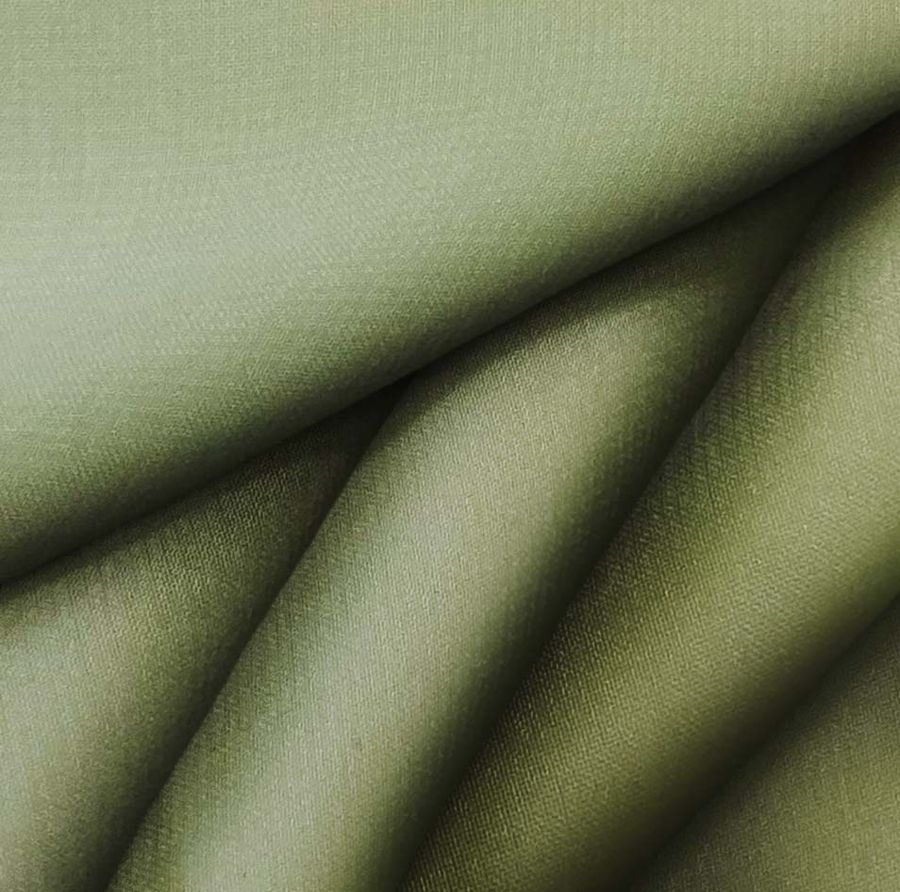 La tela base es la Gasa Transparente - Salamanca en un verde elegante y sofisticado de tonalidad cocodrilo, con un CMYK de 54 37 75 25. Este color secundario evoca la fuerza y la astucia del animal que lleva en su nombre, pero a la vez, el efecto de transparencia que proporciona la gasa suaviza su presencia. Combina con tonos tierra y neutros, como el marrón chocolate o el beige. El tejido está impreso con el color liso a una sola cara por impresión digital textil, lo que permite una calidad y definición notorias.