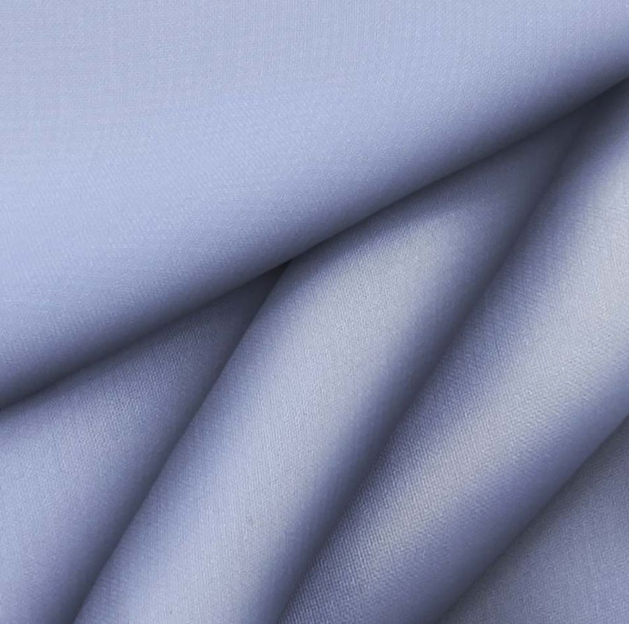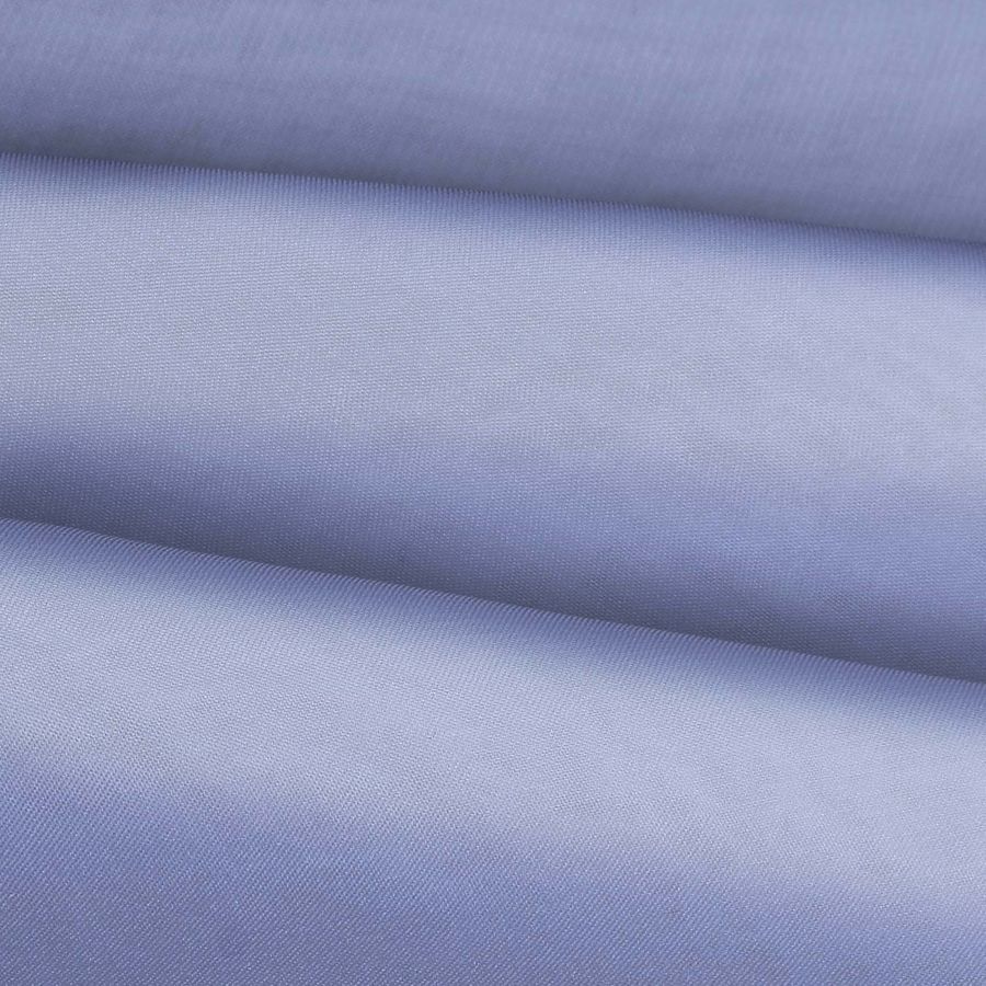 La tela base es visualmente atractiva por su textura traslúcida y posee un suave tacto delicado debido a su delgadez. Por otro lado, el tono azul aciano en un solo color liso confiere un aspecto sereno y elegante, ideal para piezas de moda como blusas, faldas y pañuelos, además de su uso común en lencería, incluyendo novias. La tela está impresa a una cara mediante tecnología de impresión digital textil, lo que la dota de una excelente calidad de imagen.