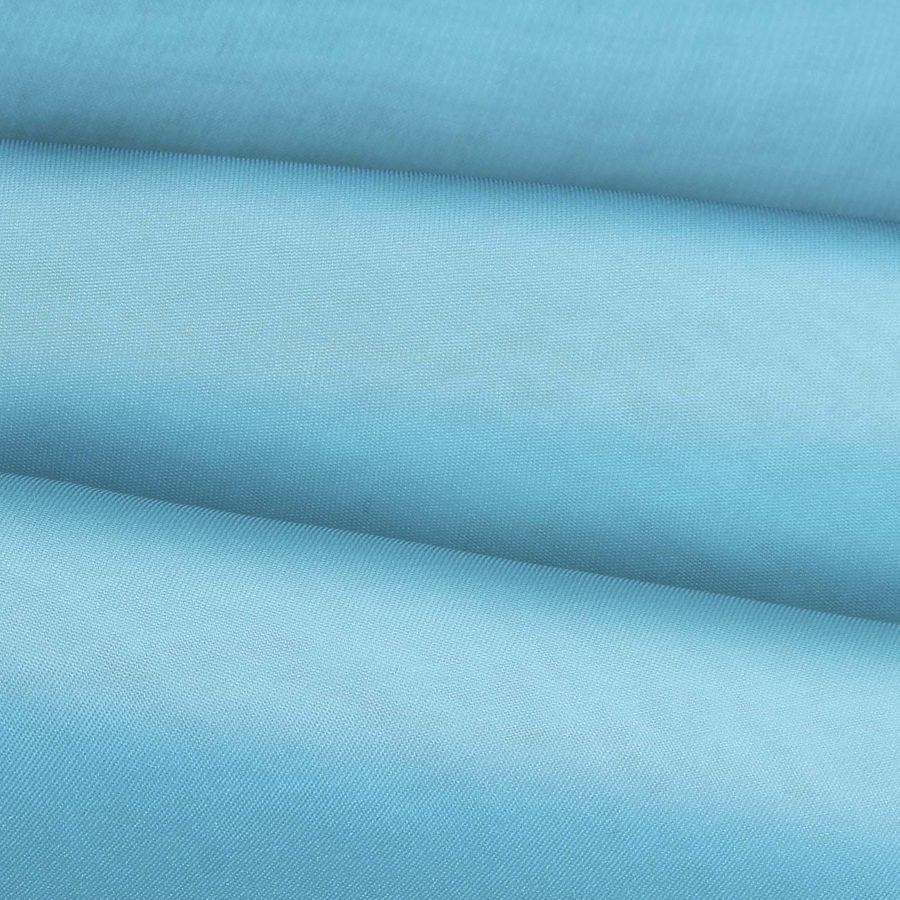 La tela base es la Gasa Transparente - Salamanca, compuesta por 100% poliéster y con un gramaje de 28 gr/m2, y se presenta en un color liso impreso en tonalidades de azul claro. El CMYK del color es 55 3 0 0, lo que indica que su tonalidad principal es el cian, y en menor medida el magenta. Este color primario combina muy bien con tonalidades de azul, verde y morado. Esta tela se imprime a una sola cara por impresión digital textil, lo que implica que no es un tejido tintado sino impreso.
