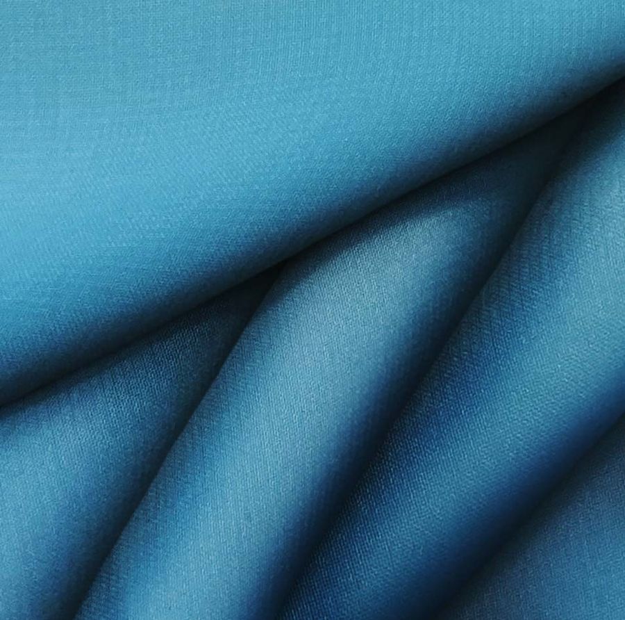 La tela base, Gasa Transparente - Salamanca, es un tejido de gasa con una composición de 100% POLIÉSTER y un gramaje de 28 gr/m2. Este tejido tiene una textura delicada y visualmente transparente, y su ancho es de 150 centímetros. El color impreso es Azul Cosmos, con un CMYK de 87 50 25 9, lo que se traduce en un tono azul oscuro con una ligera mezcla de morado. Este color combina especialmente bien con tonos tierra y amarillos, así como con tonos azul turquesa y verde menta.