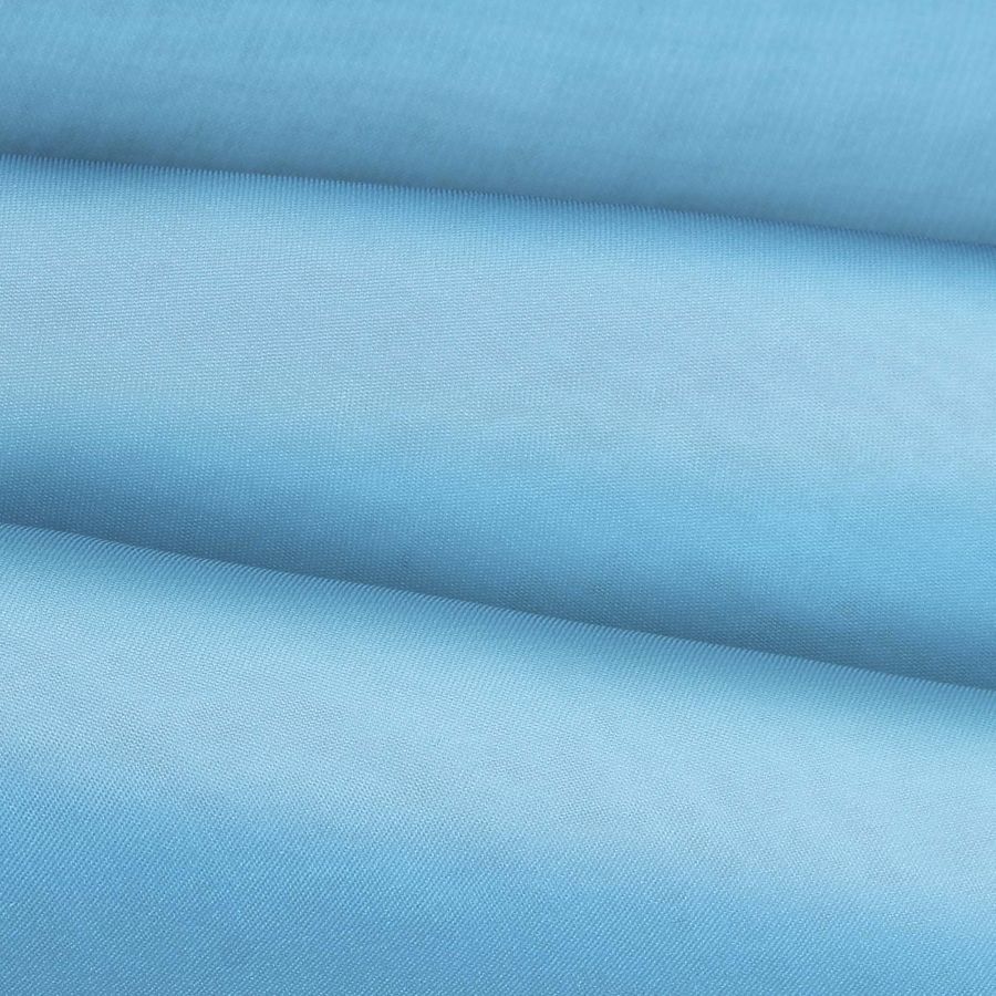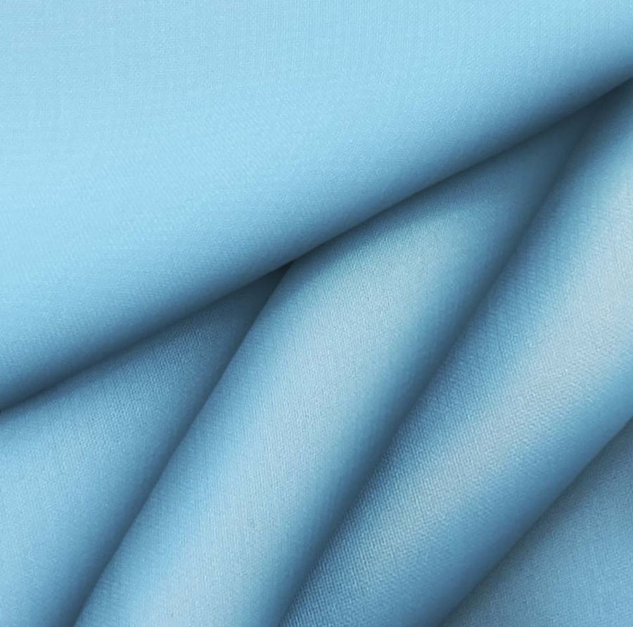 La tela base de esta descripción es la Gasa Transparente - Salamanca, compuesta por un 100% de poliéster y con un gramaje de 28 gr/m2. La tela es transparente y de textura delicada. El color liso impreso es el Azul Frita, que presenta un valor de 53 en la tinta Cian y 11 en la tinta Magenta. Este color se caracteriza por ser un tono azul profundo con un sutil toque verdoso. Combina especialmente bien con colores beige, crema, gris y blanco, así como también con tonos más vivos como el amarillo o naranja.