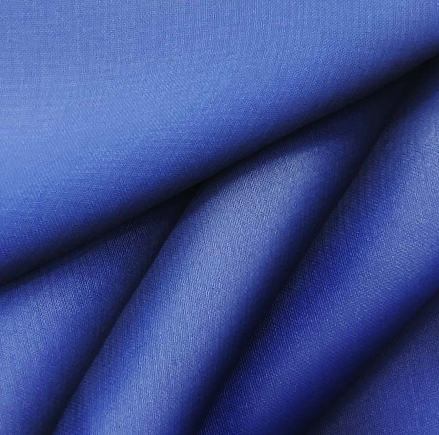 La tela base, Gasa Transparente - Salamanca, está compuesta por 100% poliéster, con un gramaje de 28 gr/m2 y una anchura de 150 cm. El color liso impreso es Azul Klein, con un CMYK de 96 82 0 0. Este tono es un azul neón brillante con una sensación de energía y vitalidad, que combina bien con otros tonos encendidos como el rosa brillante, el amarillo limón o el verde esmeralda.