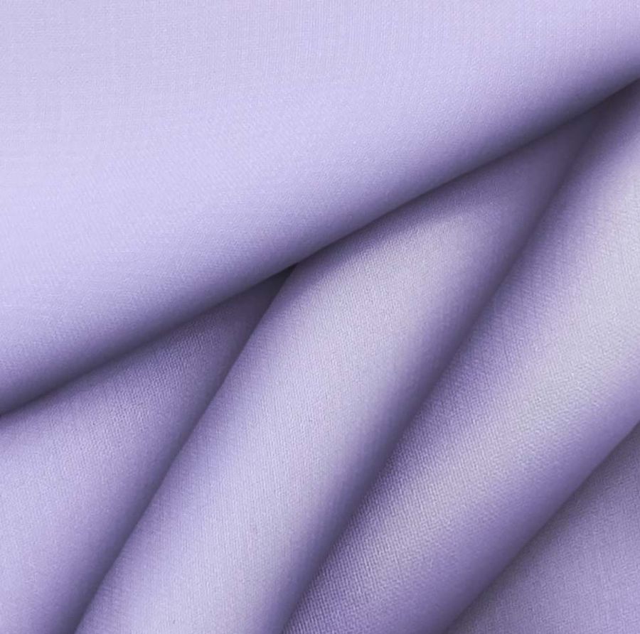 La tela base de este tejido es una Gasa Transparente de Salamanca, compuesta al 100% por poliéster y con un gramaje de 28 gr/m2. Su ancho es de 150 cm y está diseñada para su uso en lencería, vestidos, faldas, ropa deportiva y accesorios, principalmente durante la temporada de verano. El color liso impreso es un Azul lavanda, con un CMYK de 35 37 0 0, que le otorga una textura visual y táctil delicada y transparente. Este color secundario combina especialmente bien con tonos complementarios como el amarillo y el naranja, creando un efecto armonioso y primaveral.
