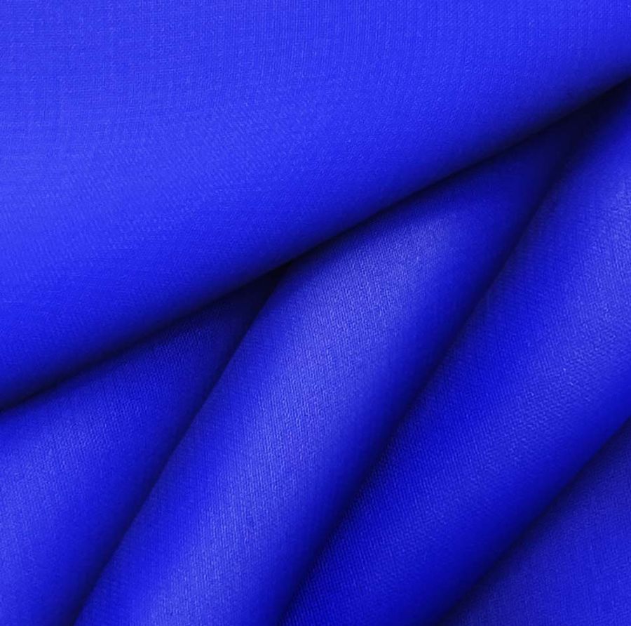 La tela base de este tejido es la Gasa Transparente - Salamanca, compuesta en su totalidad por poliéster y con un gramaje de 28 gr/m2. El color liso impreso es un tono de azul mate, cuyo CMYK es 93 75 0 0, lo que indica que tiene una alta concentración de tinta Cyan y Magenta. Este color secundario simboliza la confianza y la tranquilidad, y combina perfectamente con tonos blancos o claros que destaquen su suavidad y frescura.