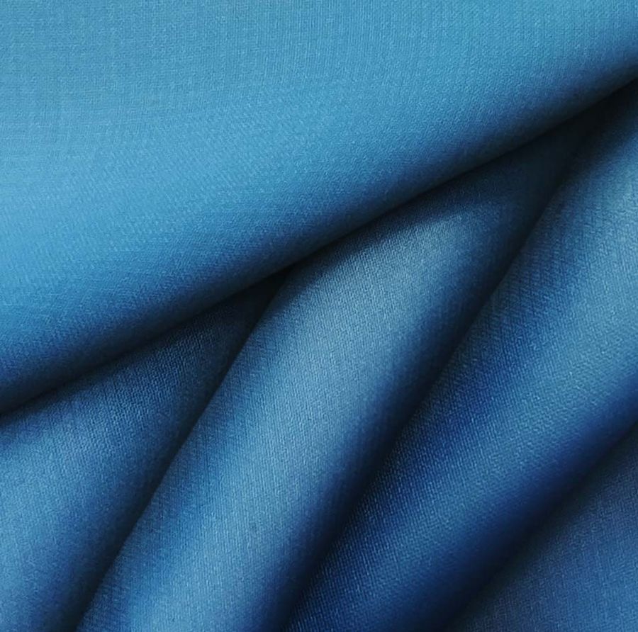 La tela base es la Gasa Transparente - Salamanca, compuesta al 100% de poliéster con un gramaje de 28 gr/m2 y un ancho de 150 cm. El color liso impreso es Azul Montaña, con una combinación de tinta Cyan: 92, Magenta: 62, Yellow: 22 y Black: 6, representando un CMYK de 92 62 22 6. Este color secundario posee una simbología de serenidad y frescura, inspirada en los paisajes montañosos y los colores de la naturaleza. Se combina con blanco, negro, gris y tonos tierra para crear un ambiente relajado y armonioso.