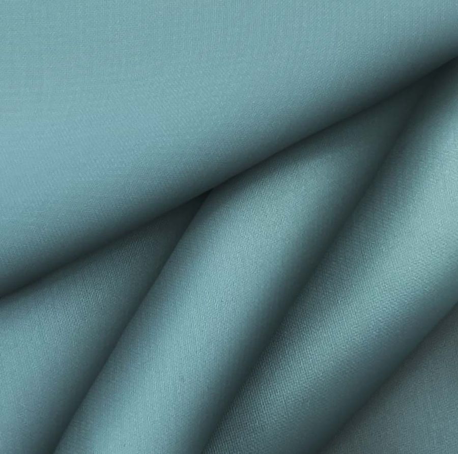 La tela base es la Gasa Transparente - Salamanca, con una composición de 100% poliéster y un gramaje de 28 gr/m2. El color liso impreso es de un tono Azul Porcelana, con un CMYK de 70 37 40 21, lo que significa que predominan los tonos de cian, seguido de magenta y amarillo, y finalmente el negro para dar profundidad. Este color se podría considerar un azul pastel con un toque de verde suave, lo que le da una sensación de frescura al tejido. Este color combina muy bien con tonos neutros como el blanco, gris y negro, pero también con tonos más fuertes como el fucsia y el verde agua.