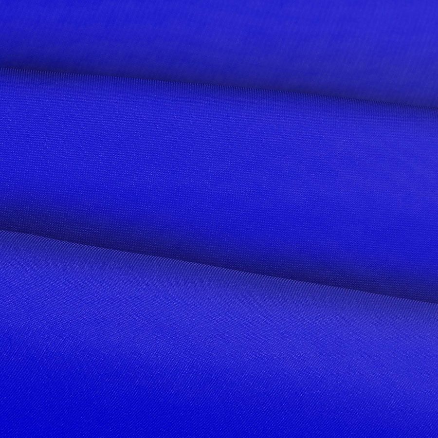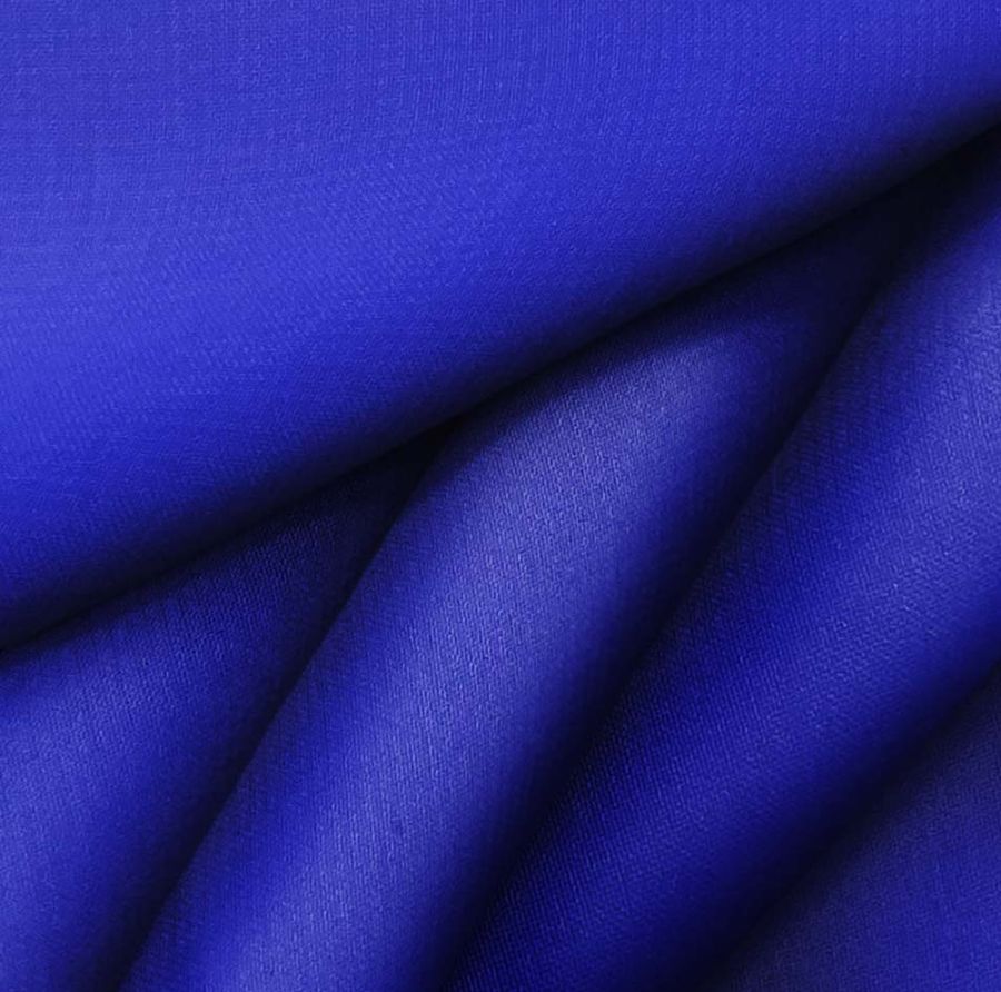 La tela base es la Gasa Transparente - Salamanca, compuesta totalmente de poliéster y con una densidad de 28 gr/m2. El color liso impreso en ella es un tono de azul intenso con una proporción de 100% de tinta Cyan, 92% de tinta Magenta, 21% de tinta Yellow y 6% de tinta Black según el modelo de color CMYK, lo que le otorga un resultado final vibrante e intenso. El color secundario predominante es el violeta, que se crea a partir de la mezcla de la tinta cyan y la magenta. Además, el azul impreso combina magníficamente con tonos grises y blancos, así como con tonos pasteles como el rosa claro y el melocotón.