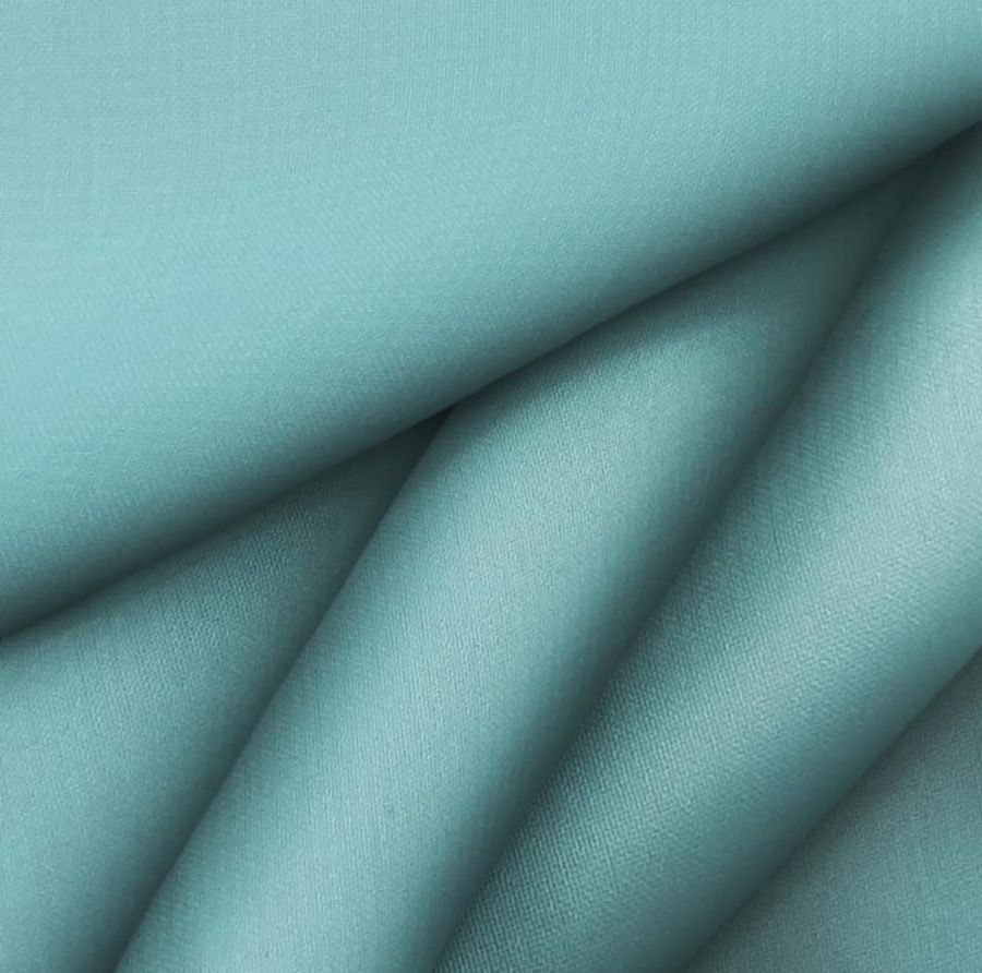 La tela base de este tejido es la Gasa Transparente - Salamanca, con una composición de 100% poliéster y un gramaje de 28 gr/m2. La tela es transparente y delicada al tacto, aportando una sensación de ligereza y frescura al producto final. El color liso impreso es un Azul Cadet Blue, el cual tiene un CMYK de 65 21 37 4, lo que significa que está compuesto en su mayoría por cian y en menor medida por magenta, amarillo y negro. Este color aporta una sensación de tranquilidad y estabilidad emocional, y es ideal para dar un toque de elegancia y sofisticación a cualquier prenda. Además, combina muy bien con otros tonos azules y grises.