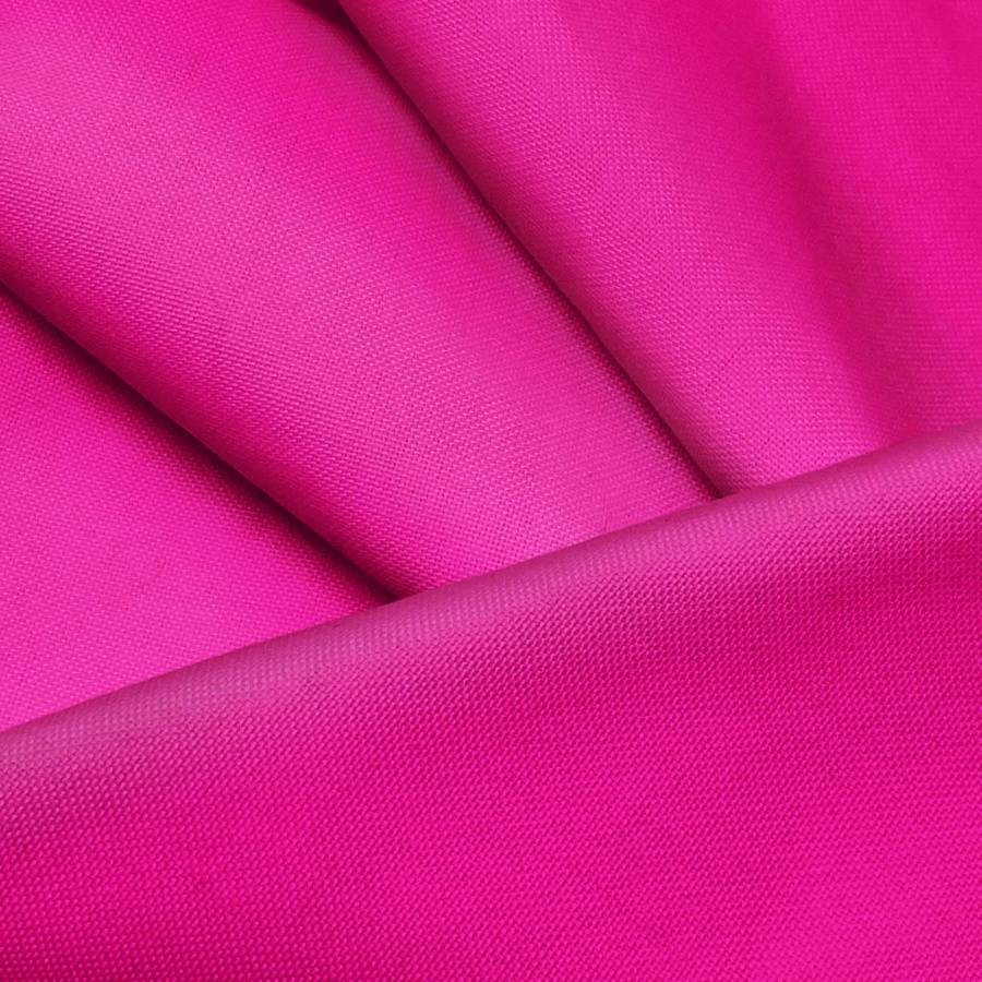 Esta tela está impresa con el color liso a una sola cara por impresión digital textil, lo que significa que el tejido en sí no es de color rosa fucsia, sino que la tinta se ha impreso únicamente en una de las caras de la tela. La Loneta Reciclada de PET – Dallas tiene una textura rugosa y rígida, y su opacidad la hace resistente y adecuada para usos decorativos y prendas de vestir.