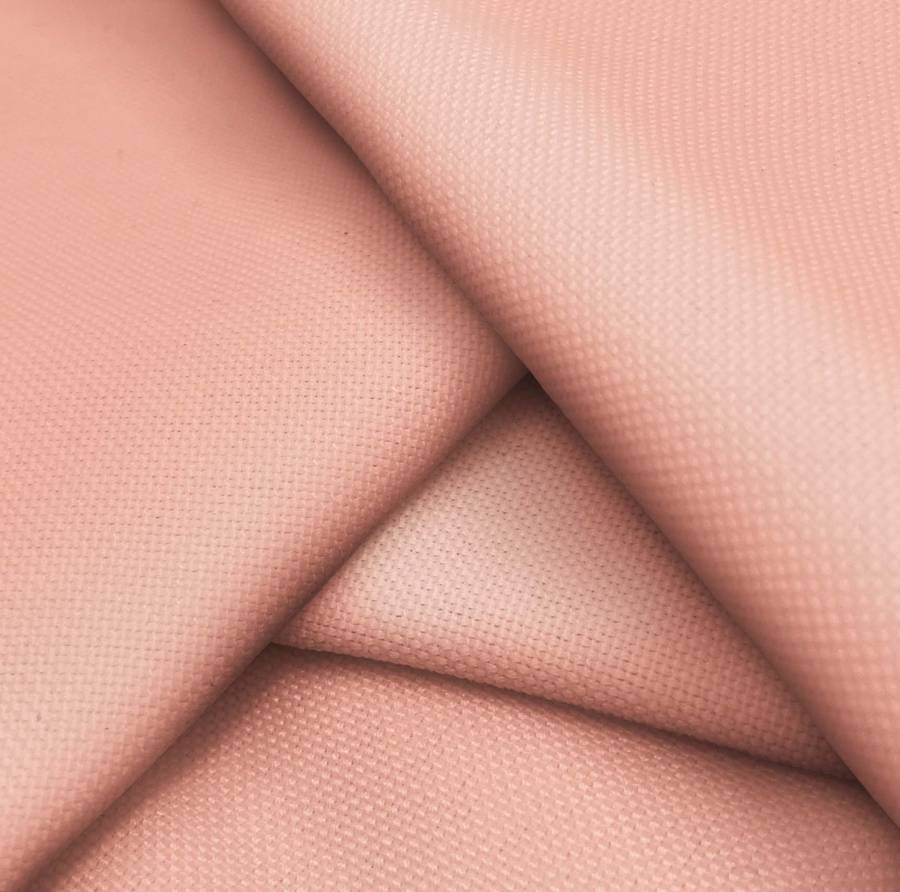 La tela base es Loneta Reciclada de PET - Dallas, 100% poliéster con un gramaje de 260 gr/m2, ancho de 160 cm y certificada como sostenible por GRS. El color liso impreso en la tela es un suave tono rosa melocotón, con un valor CMYK de 0 53 42 0. Este color transmite suavidad y delicadeza, combinando a la perfección con tonos neutros y tierra como el beige, el marrón suave o el gris. El color también irradia un toque de calidez y elegancia que lo hace perfecto para la decoración y la moda.