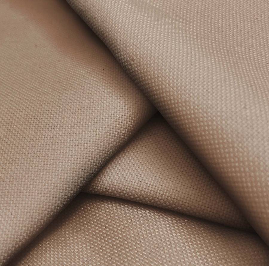 La tela base es la Loneta Reciclada de PET - Dallas, con una composición de 100% poliéster, gramaje de 260 gr/m2 y un ancho de 160 cm. En cuanto al color liso impreso, se trata de un tono Marrón Nuez con un CMYK de 36 47 53 31, que transmite una sensación de calidez y elegancia. Este color combina especialmente bien con tonos ocres, verdes y rojizos, aportando una elegancia natural y atemporal.