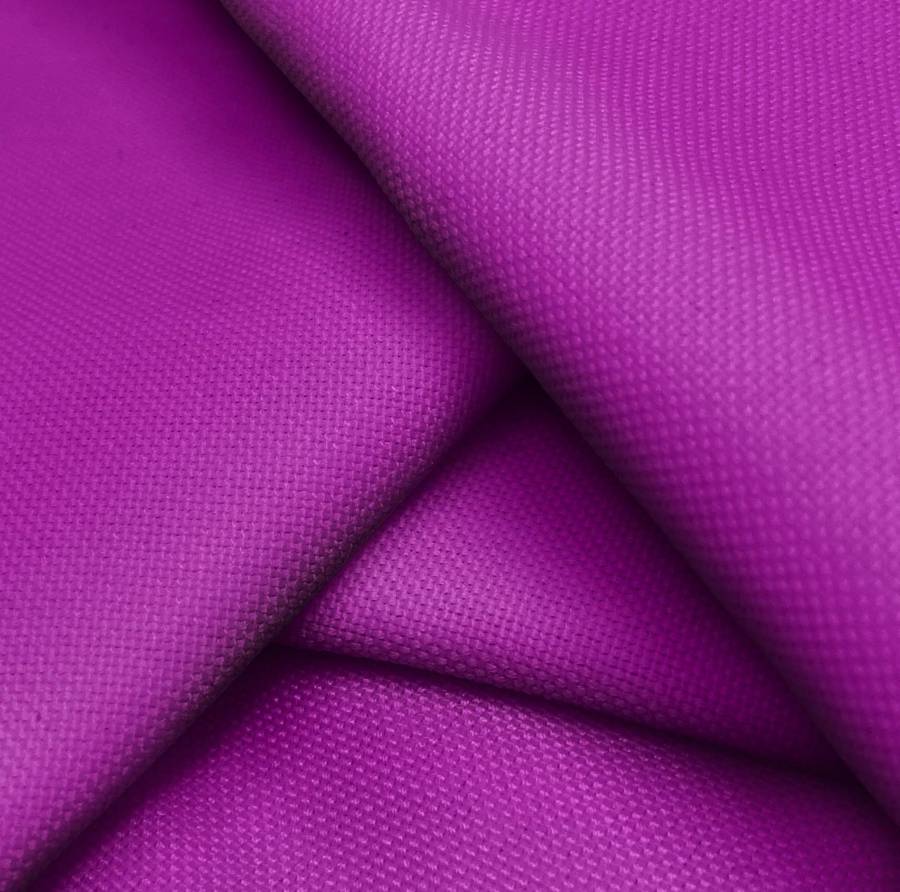 La tela base de este tejido es la Loneta Reciclada de PET - Dallas de 260 gr/m2 y 160cm de ancho, elaborada en un 100% de poliéster y certificada con el sello GRS. Esta tela presenta una textura rugosa y rígida al tacto, y su acabado visual es opaco. El color liso impreso es el Morado Mardi Gras, el cual es una mezcla de tintas cian y magenta en un 60 y 100% respectivamente, y una combinación del 0% de las tintas amarilla y negra en su elaboración (CMYK: 60 100 0 0). Este color secundario es un tono intenso, vibrante y cálido que evoca la energía y la pasión. Combina idealmente con otros tonos cálidos como el rojo, naranja y rosa, creando contraste y logrando un efecto visual muy atractivo.