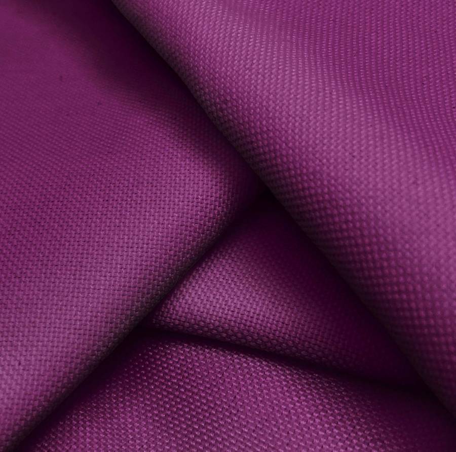 La Loneta Reciclada de PET - Dallas es una tela de loneta compuesta al 100% de poliéster con un gramaje de 260 gr/m2 y un ancho de 160 cm. El color liso impreso es un Morado Púrpura de Tiro, que se compone de los siguientes porcentajes en el CMYK: 70 en Cyan, 100 en Magenta, 33 en Yellow, y 47 en Black. Este color se caracteriza por ser profundo, intenso y con una gran personalidad, otorgando un toque sofisticado a cualquier diseño. Además, combina muy bien con tonos azules profundos y oscuros, así como con rojos terrosos y azafrán. Es importante destacar que el tejido está impreso a una sola cara mediante impresión digital textil, lo que implica una gran resolución y definición en el diseño impreso.