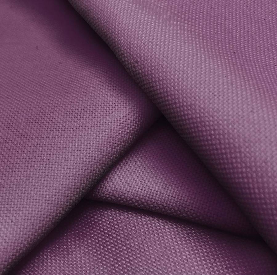 La tela base, Loneta Reciclada de PET - Dallas, es una loneta de 260 gr/m2, compuesta de 100% poliéster. El color liso impreso es Morado/Violeta Japonés, con un CMYK de 66 84 35 32. El color se caracteriza por su tonalidad vibrante y profundidad. Combina especialmente bien con tonos rosados, azul oscuro y café claro. Es importante destacar que la tela está impresa con el color liso en una sola cara mediante impresión digital textil.