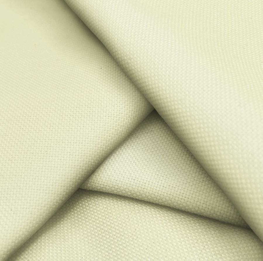 La tela base es la Loneta Reciclada de PET - Dallas, con una composición del 100% poliéster y un gramaje de 260 gr/m2. El color liso impreso es Amarillo Cera, con un CMYK de 10 3 41 0. Este color se describe como un tono amarillo suave con un matiz cálido y cremoso. Se combina bien con tonos marrones, verdes y grises.