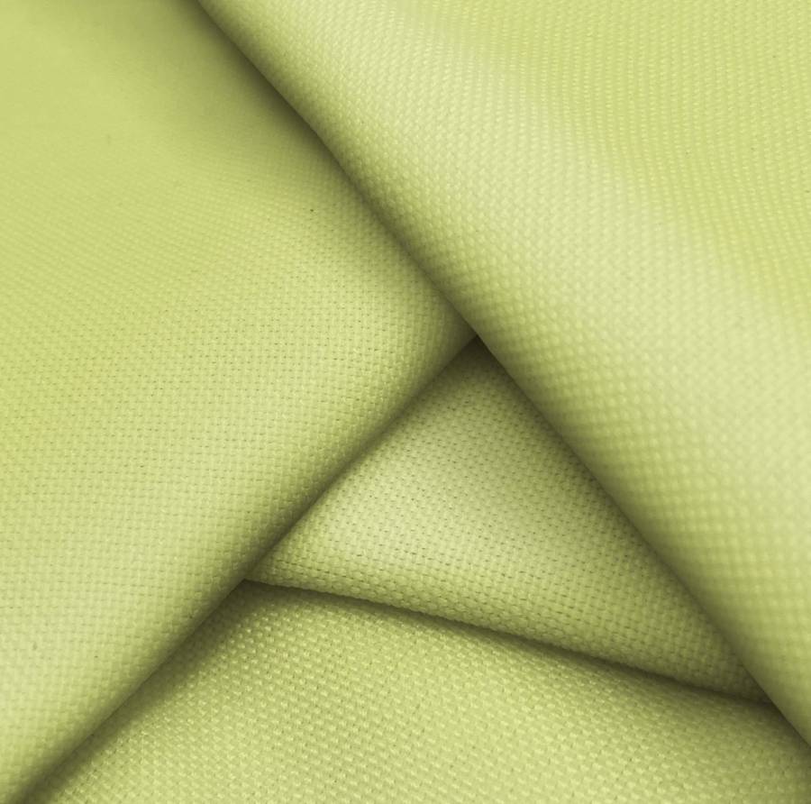 La Loneta Reciclada de PET - Dallas es una tela de tipo loneta con una composición 100% poliéster, de gramaje 260 gr/m2 y ancho de 160 cm. Se presenta en un color liso impreso con tonalidades de amarillo y oliva, cuyo CMYK es 34 11 70 0. El color secundario es una fusión entre el amarillo y el verde, evocando a la naturaleza y a la luz. Combina especialmente bien con tonos tierras y azules oscuros.