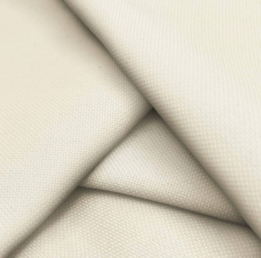 Es importante mencionar que la tela está impresa a una sola cara por impresión digital textil, lo que significa que el color liso solo se encuentra en una de las caras de la tela. La tela base es una loneta de poliéster reciclado con un gramaje de 260 gr/m2 y un ancho de 160 cm. Su textura es rugosa y rígida al tacto, con una apariencia opaca.