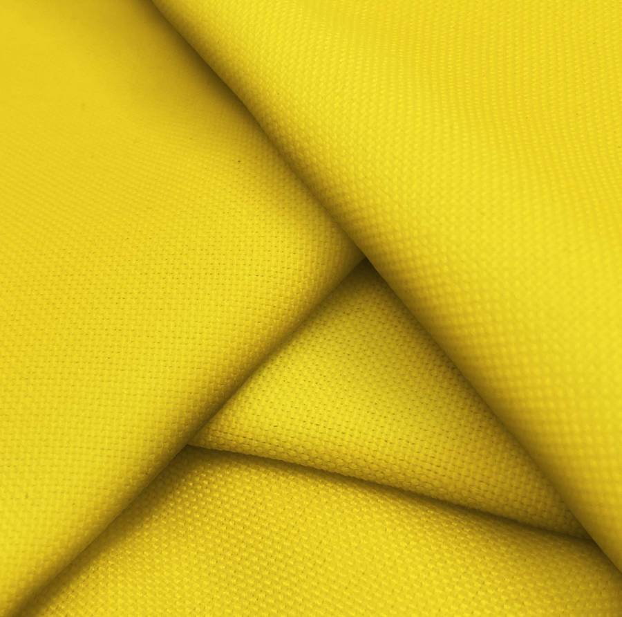 La tela base es Loneta Reciclada de PET - Dallas, compuesta 100% de poliéster, de 260 gr/m2 y un ancho de 160 cm. El color liso impreso es amarillo permanente con un contenido de tinta cian de 6, tinta magenta de 27, tinta yellow de 91 y tinta black de 0, que da lugar al CMYK 6 27 91 0. Este color es vibrante y atractivo, con un toque de energía y alegría, especialmente adaptado para decoración y moda. Combina perfectamente con otros colores secundarios como el verde y el azul, así como con tonalidades más neutras como blanco y gris.