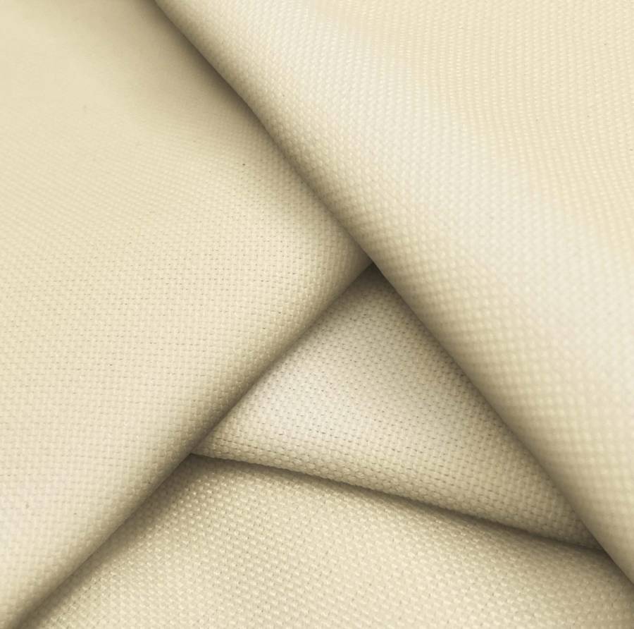 La tela base es la Loneta Reciclada de PET - Dallas, de tipo loneta, con composición 100% poliéster, un gramaje de 260 gr/m2 y un ancho de 160 cm. El color liso impreso es amarillo-ocre claro, con un CMYK de 8 13 40 0, y se combina bien con tonalidades terrosas y verdes. La textura de la tela base es rugosa al tacto y rígida, con un acabado visual opaco.