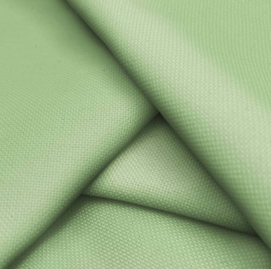 La Loneta Reciclada de PET - Dallas es una tela de 100% poliéster con un gramaje de 260 gr/m2 y un ancho de 160 cm. El color liso impreso es un suave verde pálido que se obtiene a través de una combinación de tintas CMYK; 53 de cyan, 17 de magenta, 63 de amarillo y 2 de negro. Este tono transmite armonía y serenidad, simbolizando la naturaleza y su frescura.