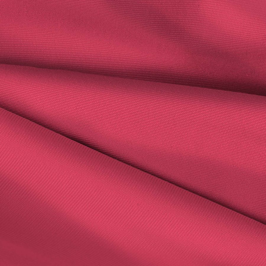 La tela base es Lycra de Poliéster, Nairobi de 270 gr/m2, compuesta por un 82% de poliéster y un 18% de elastano con un gramaje de 270 gr/m2 y un ancho de 150 cm. El color liso impreso es rojo amaranto, con una tinta cyan de 2, tinta magenta de 87, tinta yellow de 48 y tinta black de 0, lo que resulta en un CMYK de 2 87 48 0.