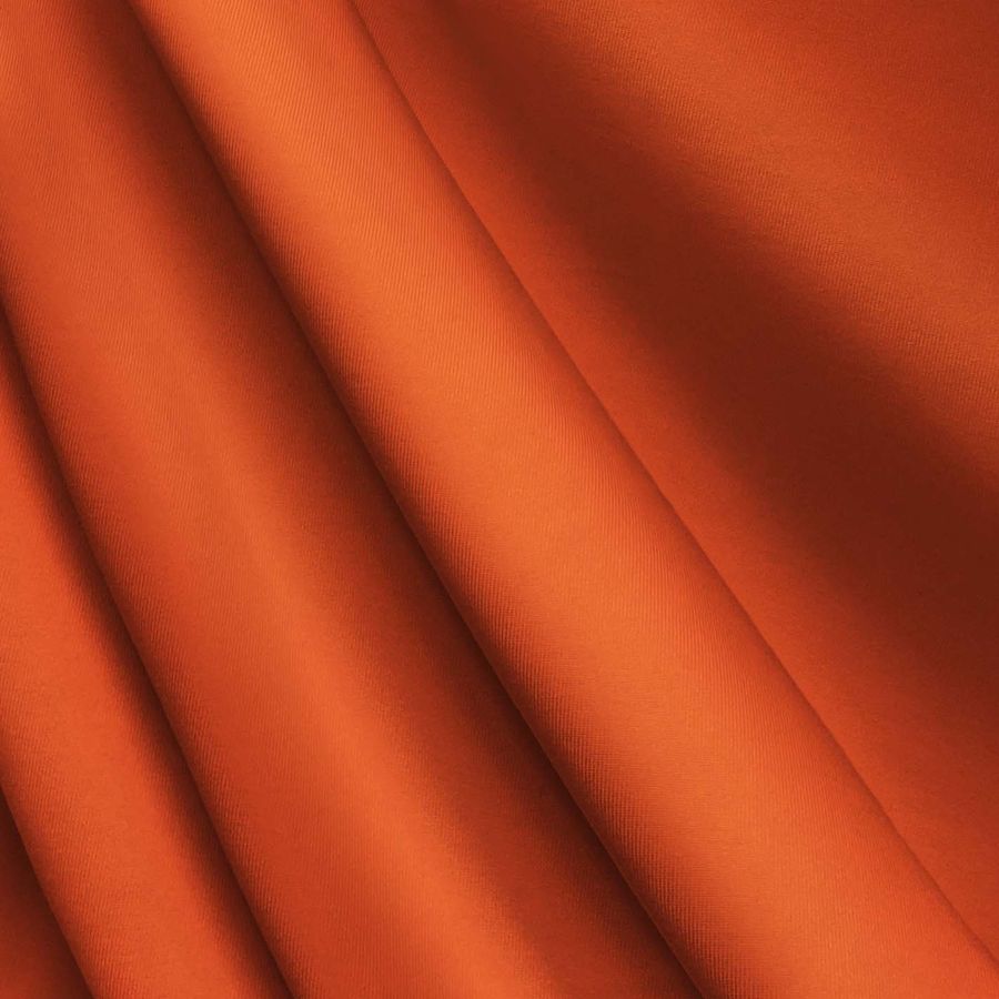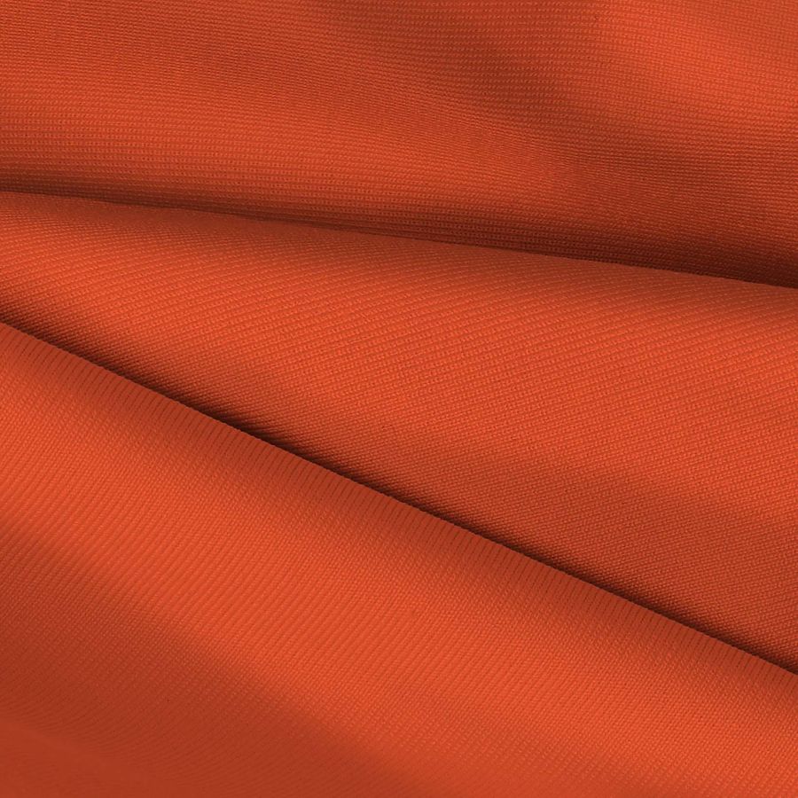La tela base es una Lycra de Poliéster de 270 gr/m2 llamada Nairobi, compuesta por 82% de poliéster y 18% de elastano, con una medida de ancho de 150 cm. El color liso impreso en esta tela es un intenso Rojo-Rojo anaranjado con una combinación de tinta CMYK de 0 82 89 0, lo que le da un tono cálido y vibrante en su acabado. Este color secundario combina particularmente bien con tonalidades de amarillo y rosa, así como con tonos más oscuros como el morado y el azul oscuro.