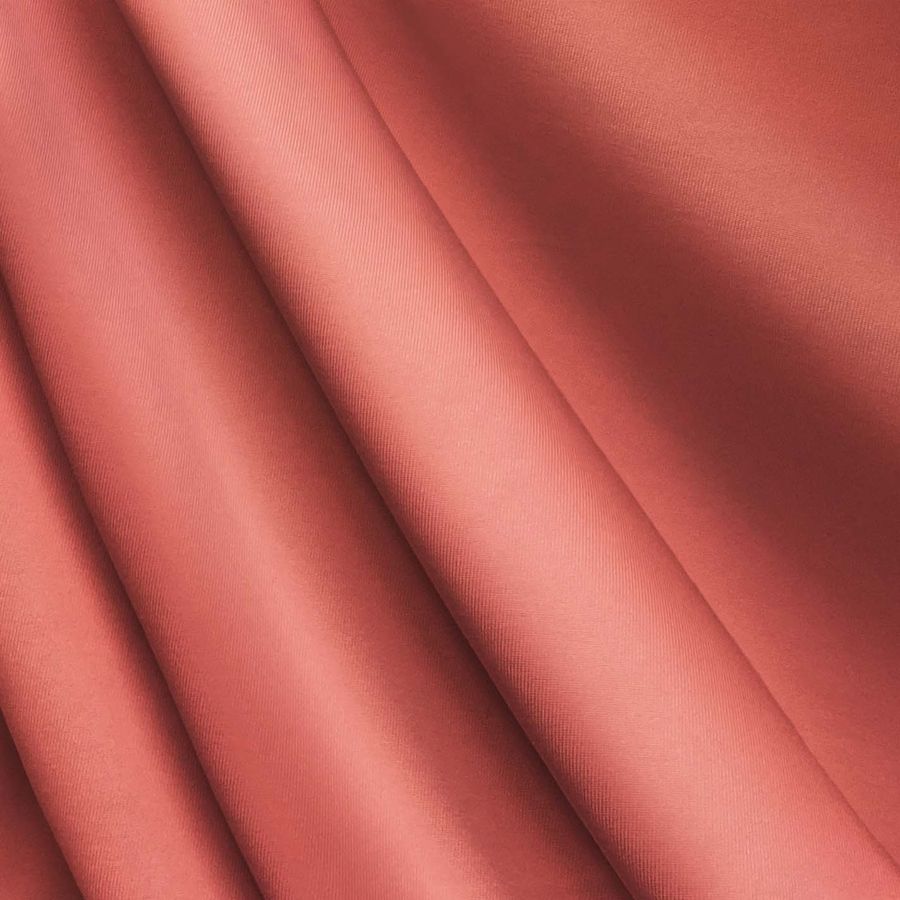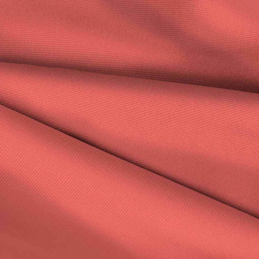 La tela base es una Lycra de Poliéster llamada Nairobi de 270 gr/m2. El color liso impreso es Rojo claro, representado por el CMYK de 0 71 53 0. Este rojo claro es un color vibrante y atractivo que combina especialmente bien con tonos rosa, negro y blanco. Se imprime solamente en una cara por impresión digital textil, sin ser un tejido tintado.