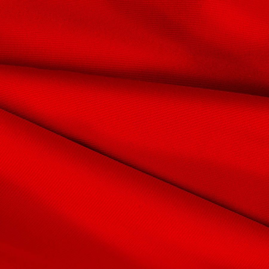 La tela base es Lycra de Poliéster - Nairobi de 270 gr/m2. El color liso impreso es un Rojo Langosta que se compone de Cyan 0, Magenta 98, Yellow 100 y Black 0 en CMYK. Este color vibrante evoca la pasión y la energía. Se combina excepcionalmente bien con negro, blanco, gris y tonos de turquesa.