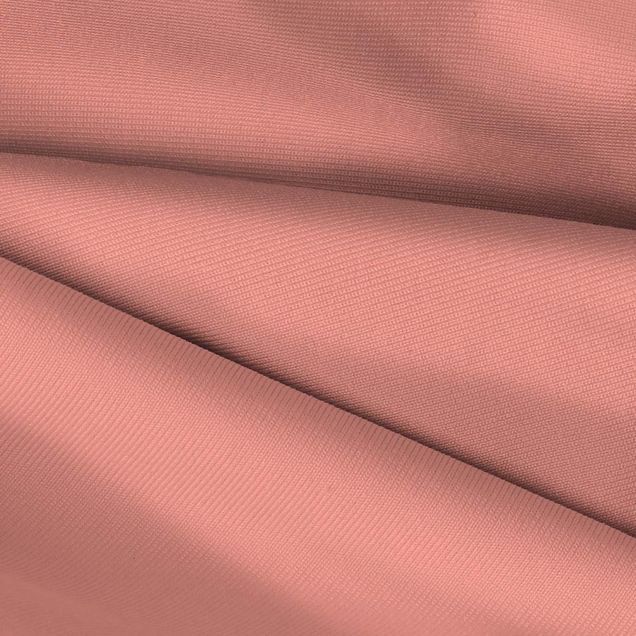 La tela base es una Lycra de Poliéster - Nairobi de 270 gr/m2 impresa en un color liso Rojo Pavo, cuyo contenido del CMYK es 0 51 38 0. El color secundario es un tono de rojo con matices azules y verdes, lo que le da una vibración interesante, combina particularmente bien con tonos cálidos como el naranja y el amarillo. La tela está impresa con el color liso a una sola cara por impresión digital textil.