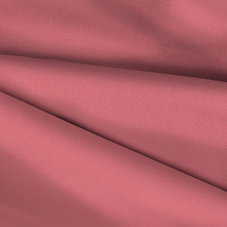 La tela base es Lycra Poliéster Nairobi de 270 gr/m2, con una composición del 82% de poliéster y 18% elastano. El color liso impreso tiene una tonalidad roja y coral, representado por un CMYK de 5 67 40 0. Se trata de un tejido impreso a una sola cara por impresión digital textil.