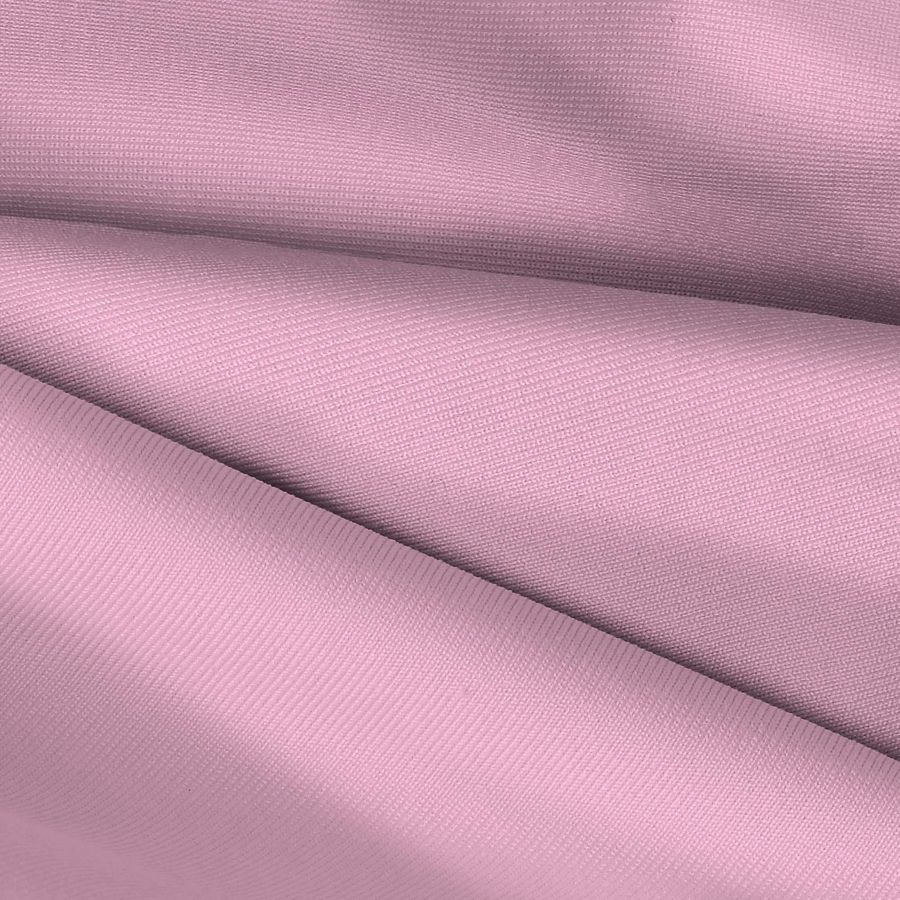 La tela base es una Lycra de Poliéster Nairobi de 270 gr/m2, compuesta por 82% poliéster y 18% elastano. El color liso impreso es un rosa suave y dulce, también conocido como Algodón Azucarado, con un CMYK de 0 37 0 0. Este color se combina particularmente bien con tonos pastel como el lila, el celeste y el verde menta.