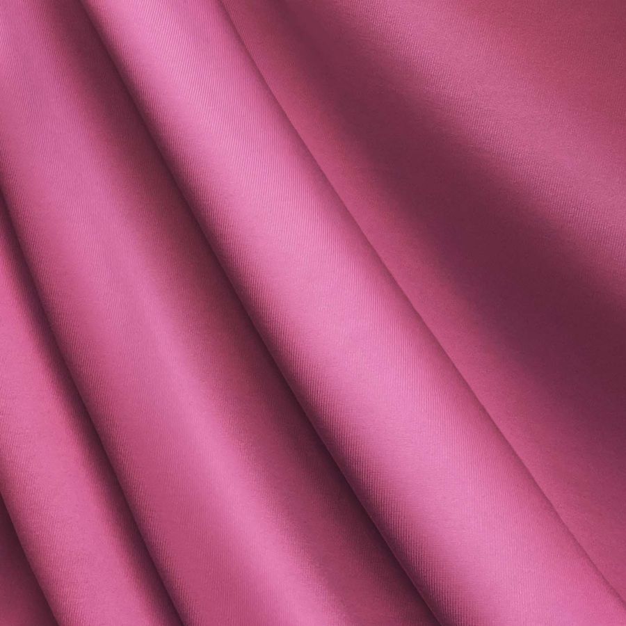 La tela base es Lycra de Poliéster - Nairobi de 270 gr/m2, con una composición de 82% POLIÉSTER y 18% ELASTANO. El color secundario es Rosa Fandango, con un CMYK de 9 76 22 1. Este tono simboliza la pasión y la alegría, mientras que técnicamente es un color vibrante con predominancia de tonos magenta y un toque de amarillo. Combina perfectamente con tonos neutros y grises, pero también se puede utilizar con amarillos y verdes. Es importante destacar que el tejido está impreso con el color liso a una sola cara mediante impresión digital textil.