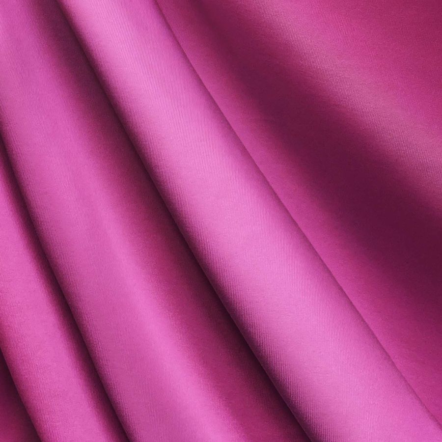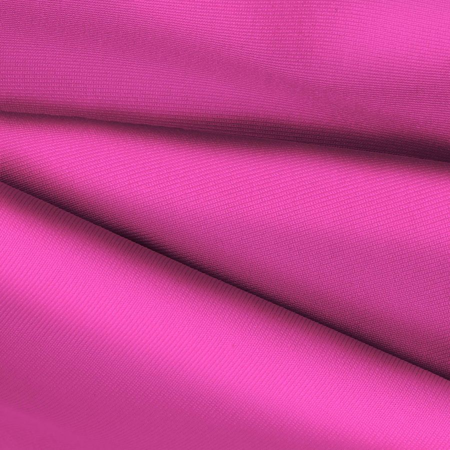La tela base es una Lycra de Poliéster en color Nairobi, con una composición del 82% de poliéster y un 18% de elastano, con un gramaje de 270 gr/m2 y un ancho de 150 cm. El color liso impreso es de color rosa plástico, con un CMYK de 2 76 0 0. Este color refleja un tono similar al rosa chicle, que combina muy bien con otros colores pastel como el amarillo, el verde agua o el azul claro.