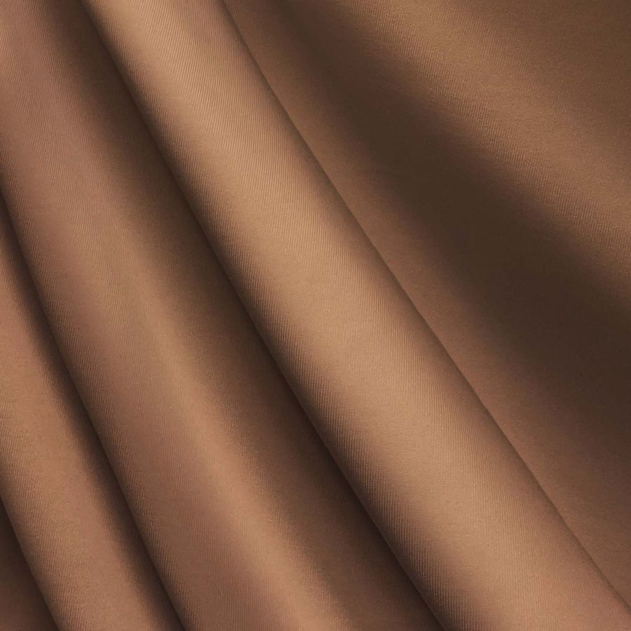 La tela base Lycra de Poliéster - Nairobi de 270 gr/m2 presenta un color liso impreso de Marrón Barro Arcilloso, cuyo CMYK es 32 56 63 32. Este tono marrón simboliza la estabilidad, confianza y seguridad. En la técnica del color, se asocia con la tierra, la naturaleza y la calidez. El color secundario es un marrón de tonalidad media, que combina armónicamente con matices de verde oliva, naranja, gris y blanco para crear contrastes. Es importante destacar que la tela base está impresa con el color liso a una sola cara por impresión digital textil, lo que significa que el color es duradero y no se decolora fácilmente.