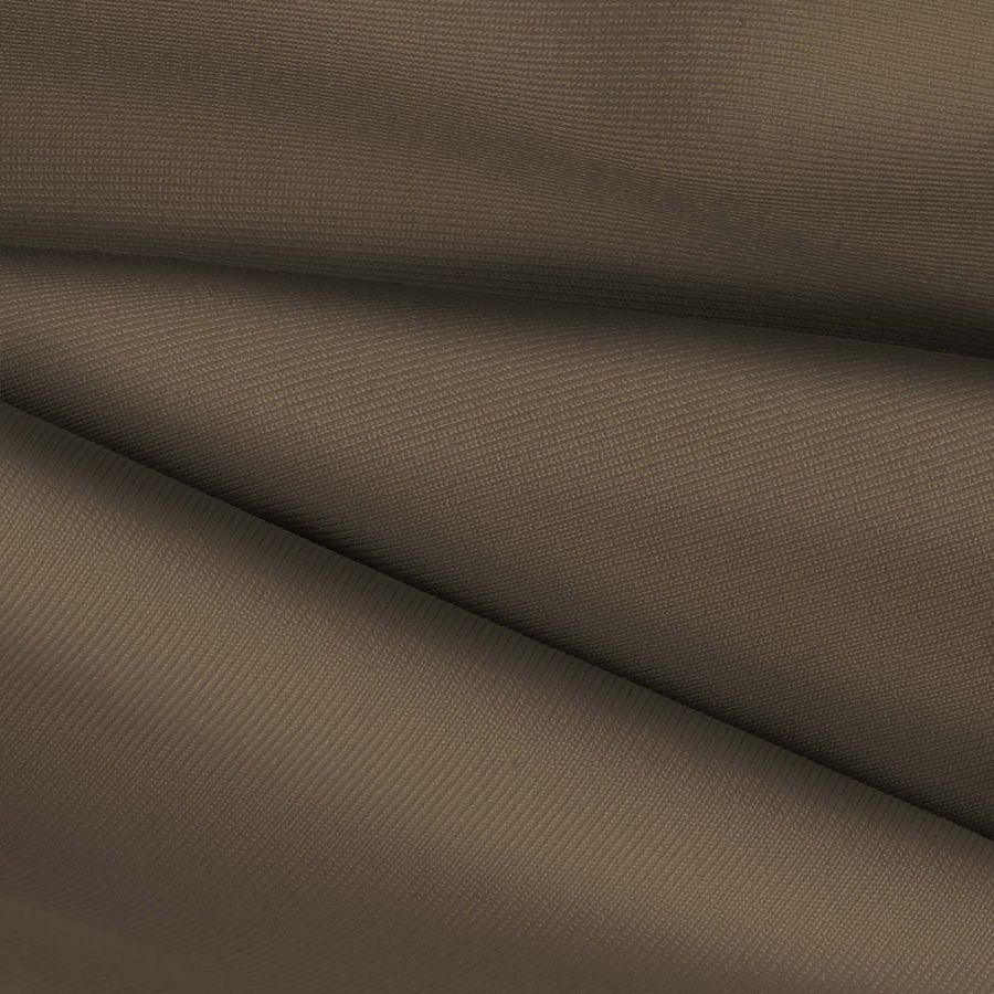La tela base es una Lycra de Poliéster - Nairobi de 270 gr/m2, con una composición del 82% de poliéster y un 18% de elastano, lo que le confiere un aspecto y tacto elástico y suave al mismo tiempo. El color liso impreso en esta tela tiene un CMYK de 46-48-64-42, lo que nos da un tono marrón-olivo. Este color secundario es una mezcla de los colores básicos como el rojo, amarillo y azul, lo que le confiere una personalidad propia. Combina especialmente bien con colores claros como el blanco y el gris, así como con otros cálidos como el beige y el mostaza.