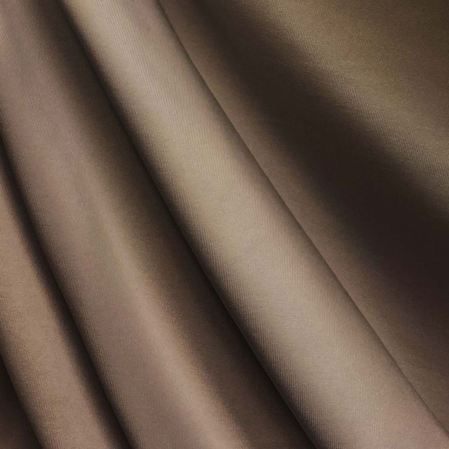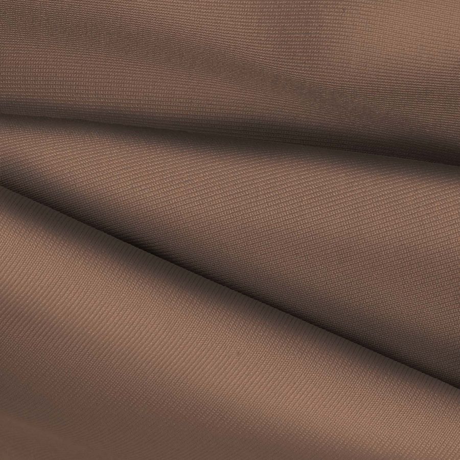 La tela base es Lycra de Poliéster - Nairobi de 270 gr/m2, con una composición del 82% de poliéster y 18% de elastano, que ofrece una textura elástica, suave y resistente al cloro. El color liso impreso en la tela es Marrón Roble, que se compone de 36% cian, 47% magenta, 54% amarillo y 32% negro en un sistema de color CMYK. Este tono secundario se encuentra entre el marrón y el naranja, lo que le da a la tela un aspecto natural, acogedor y cálido. El color marrón roble combina bien con tonos tierra, como beige, marrón oscuro y verde oliva, pero también puede combinar con tonos de piel más cálidos como coral y rosa.