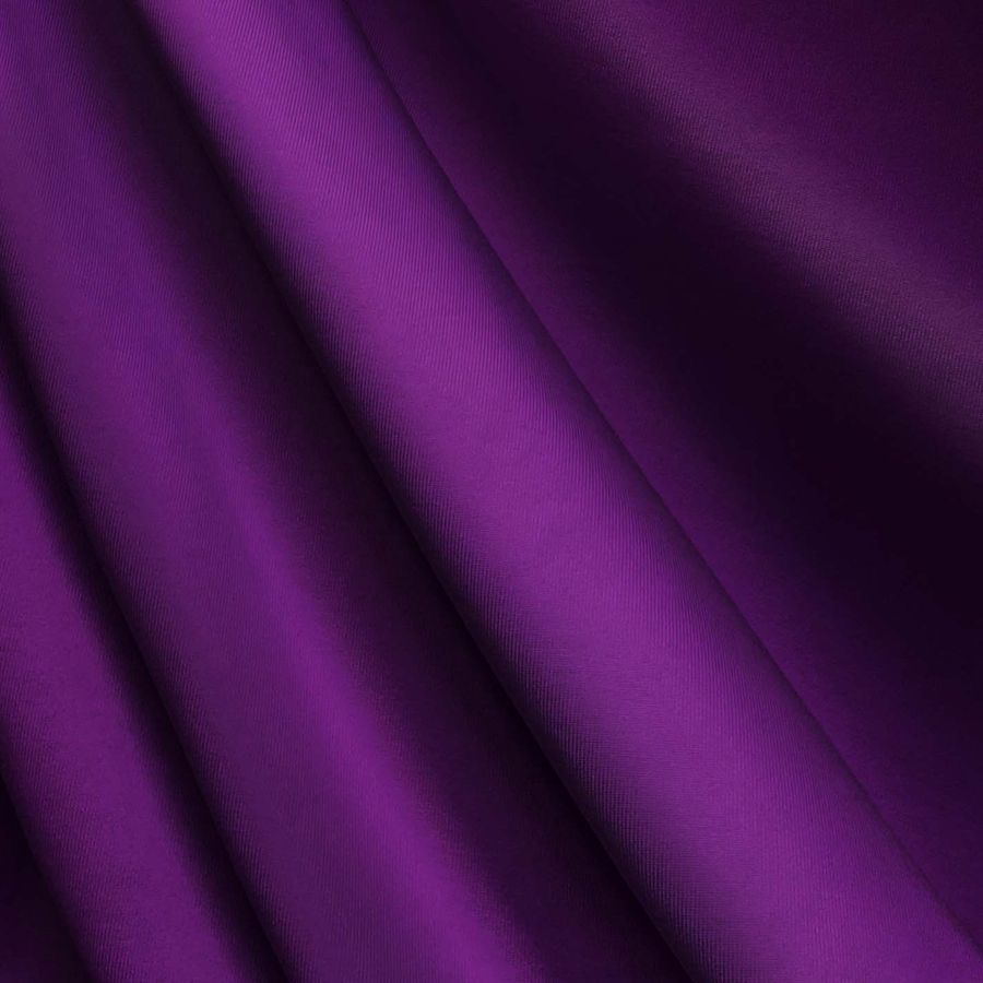 La tela base es Lycra de Poliéster - Nairobi de 270 gr/m2, con un ancho de 150 cm y una composición del 82% de poliéster y 18% de elastano. El color liso impreso es morado-mora, que se logra a través de la combinación de las tintas Cyan (82), Magenta (100), Yellow (29) y Black (24) en un CMYK de 82 100 29 24.