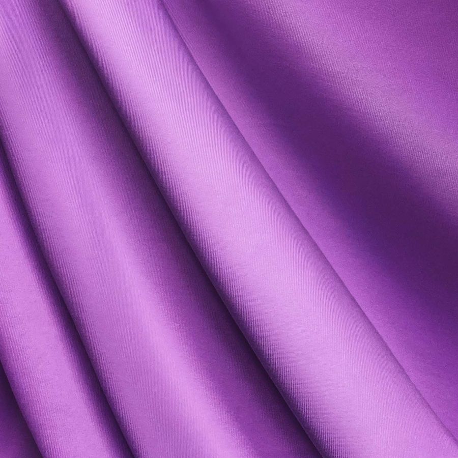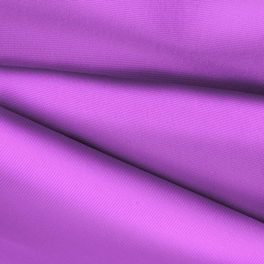 La tela base es Lycra de Poliéster - Nairobi de 270 gr/m2, un tejido elástico con una composición de 82% poliéster y 18% elastano. El color impreso es un vibrante Morado Heliotropo que se consigue con una combinación de Tinta Cyan al 38% y Tinta Magenta al 58%, sin incluir Tinta Yellow ni Tinta Black. Su perfil de color CMYK es 38 58 0 0. Este color transmite energía, vitalidad y creatividad, y se combina particularmente bien con tonos más suaves como el rosa, el amarillo o el verde menta.